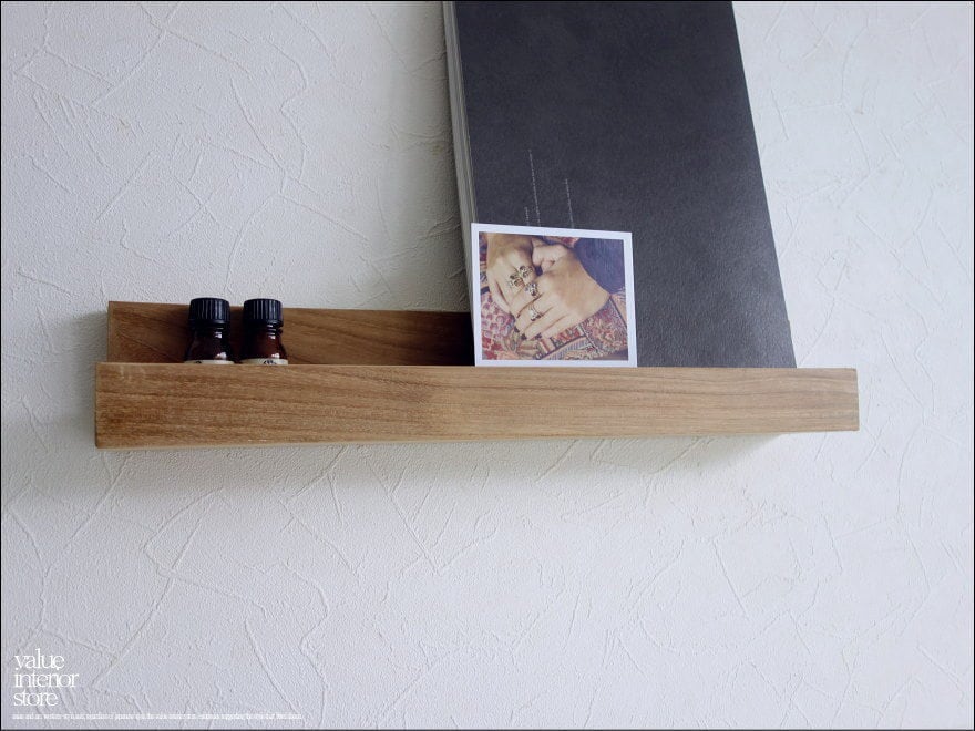 チークウォールシェルフL44/NA 壁掛け本棚 収納棚 総無垢 シンプル 壁掛収納 ウォールラック ナチュラル 天然木 木製 手作り 和風 木製
