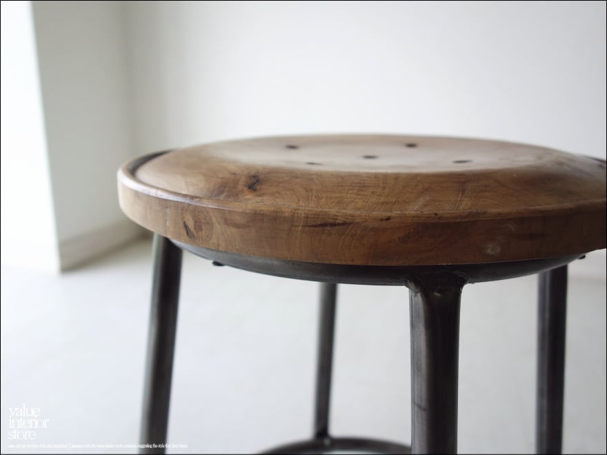 味のある座面とアイアンのバランスが絶妙なスツール。