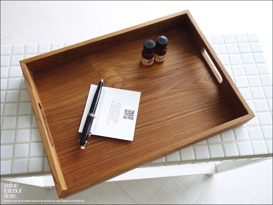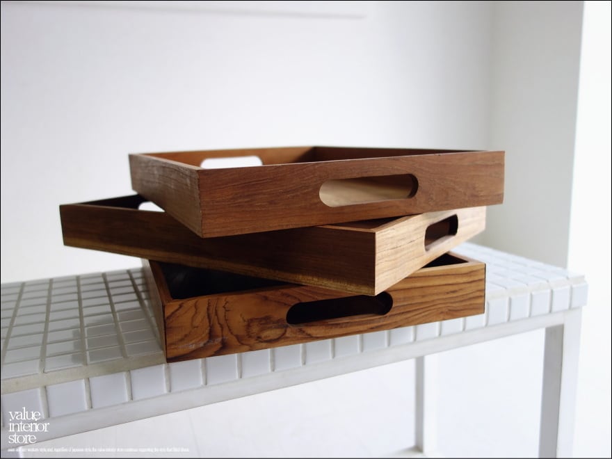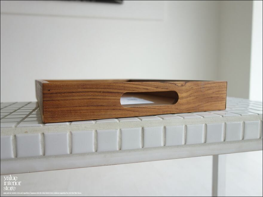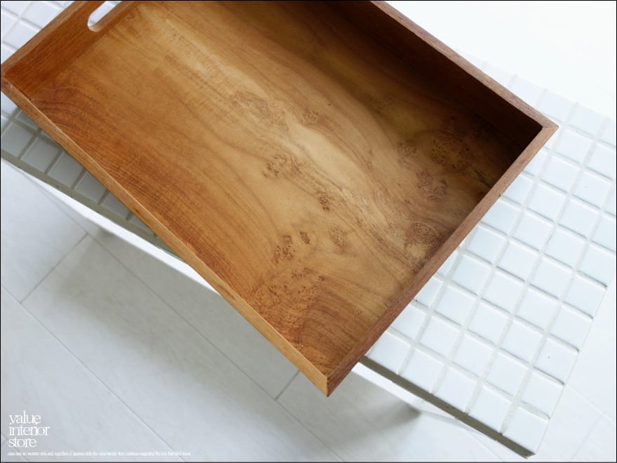 世界の3大銘木の1つに数えられ高級材として知られるチークを使ったサービングトレイ。チークの独特で味のある形や木目を活かし魅力的に仕上がっています。ハンドメイドながらなめらかな仕上がりで、表面はミネラルオイル仕上げです。