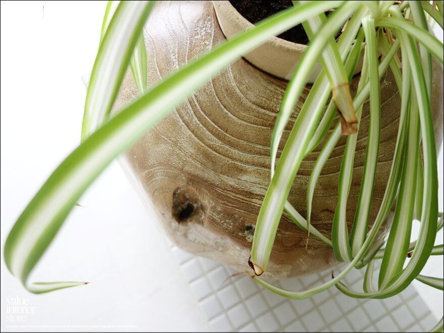 大変プリミティブで味のある木目が魅力的です。鉢を入れたりインテリア小物をディスプレイしたりお好みで使えます。
