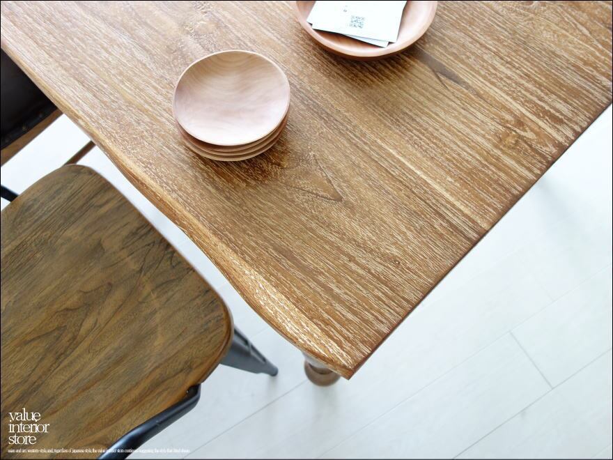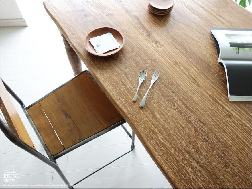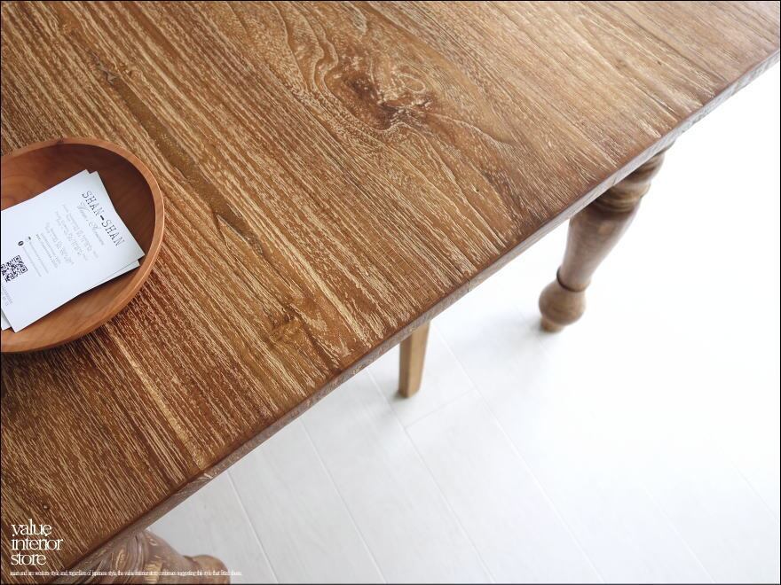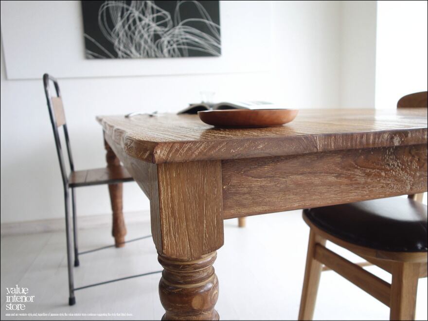 一目見ただけで木目の味わい深さを感じられるオールドチークのダイニングテーブル。