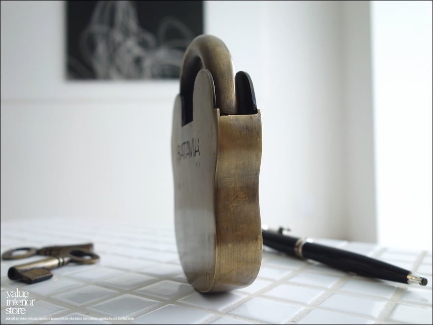 アンティーク調で雰囲気のある真鍮のロック。門や入り口の鍵として使えます。おしゃれなのでディスプレイとして