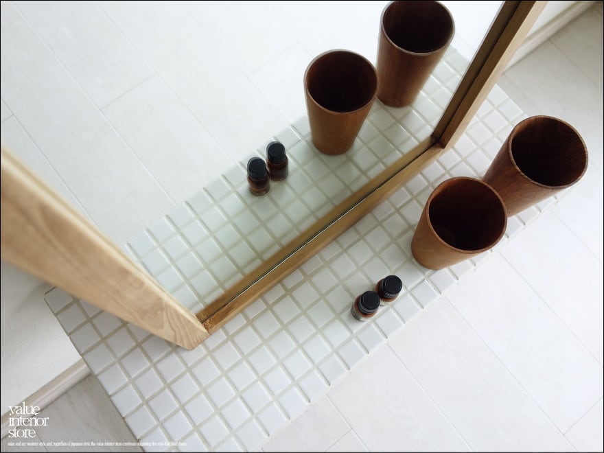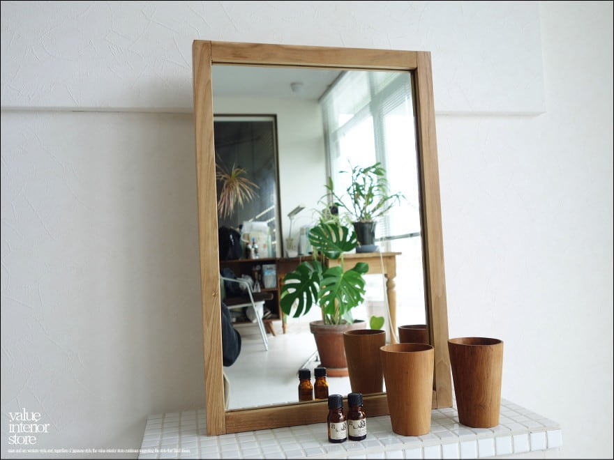 チークの木目が美しいアンフィニッシングのシンプルなチークミラー。