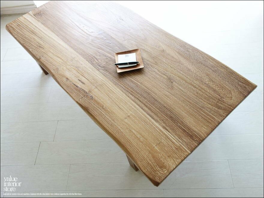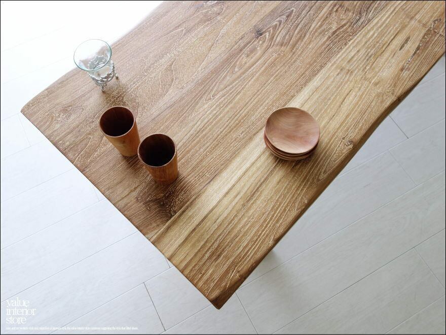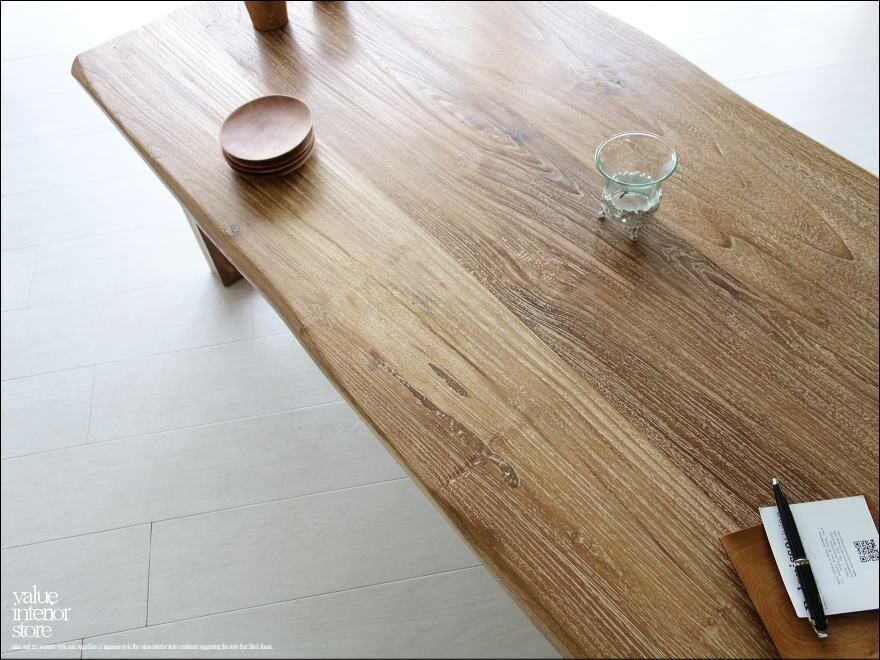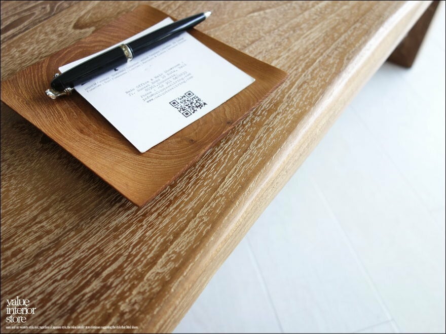 天板を支えるフレーム部分もしっかりと厚みがあり重厚感があります。ナチュラルカラーながらスマートなデザインで仕上げることで、落ち着いた大人の雰囲気に仕上がりました。チークの渋く硬い特徴を引き出す天板をシンプルな角脚が支えていて、そのバランスがとても上品です。オールドチークの良さを存分に楽しんでいただける、とてもステキなテーブルです。