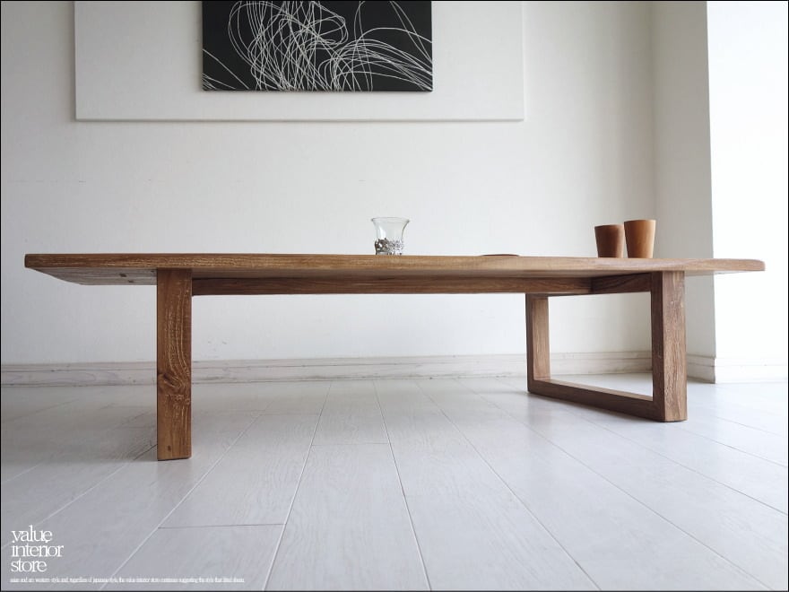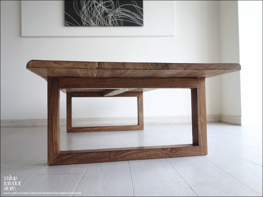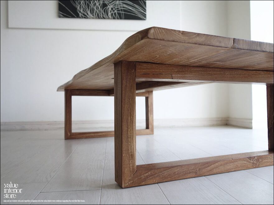 オールドチーク総無垢 座敷机 座卓 センターテーブル リビングテーブル 長机 ローテーブル 手作り 銘木 和 レトロ 古材 一台限り 送料無料