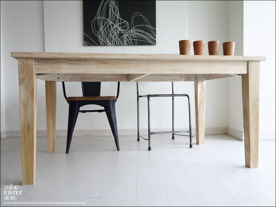 チーク総無垢材 ダイニングテーブルLNW 食卓テーブル 机 ナチュラルホワイト 手作り 銘木家具 シンプル 新品 角脚 150×90cm 『送料無料』