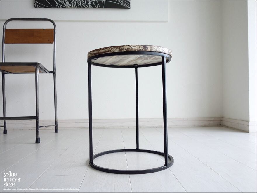 チークと鉄脚のサイドテーブル。