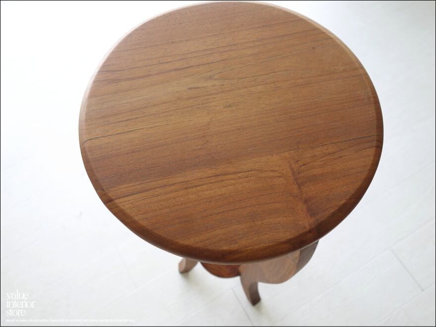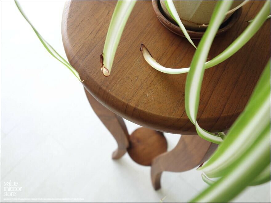 木目の美しいチークスタンド。優しく落ち着いた雰囲気が魅力的です、花台としておすすめです。時間が経過してチーク材の良質な脂分が滲み出て、既にチーク色に変化しており、また、職人さんが丹精こめて作った雰囲気が伝わってくるシェルフですので、きっとお部屋をスローダウンした素敵な雰囲気に包んでくれます。この機会にぜひどうぞ!