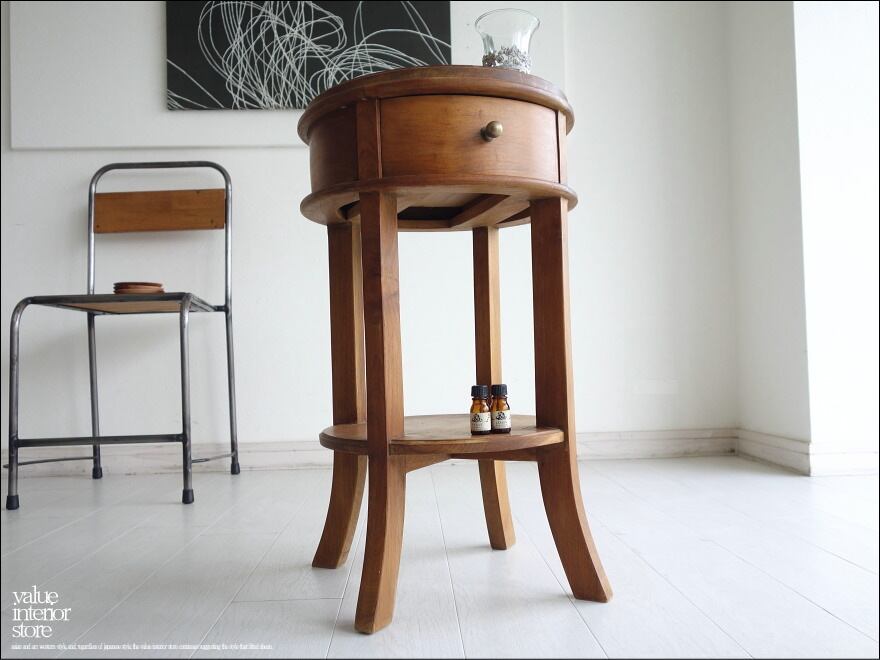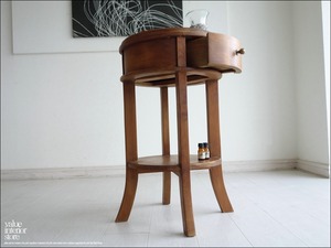 木目の美しいチークスタンド。優しく落ち着いた雰囲気が魅力的で、サイドテーブル、電話台や花台としてもおすすめです。時間が経過してチーク材の良質な脂分が滲み出て、既にチーク色に変化しており(塗装によるものではありません。) また、職人さんが丹精こめて作った雰囲気が伝わってくるシェルフですので、きっとお部屋をスローダウンした素敵な雰囲気に包んでくれます。この機会にぜひどうぞ!