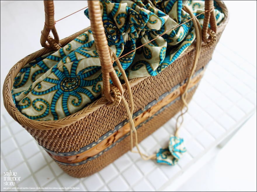 かごバッグ アタバッグKE06 手編みバッグ 浴衣や夏着物に似合います 巾着バッグ ハンドバッグ イカット生地 和装 手づくり 天然素材