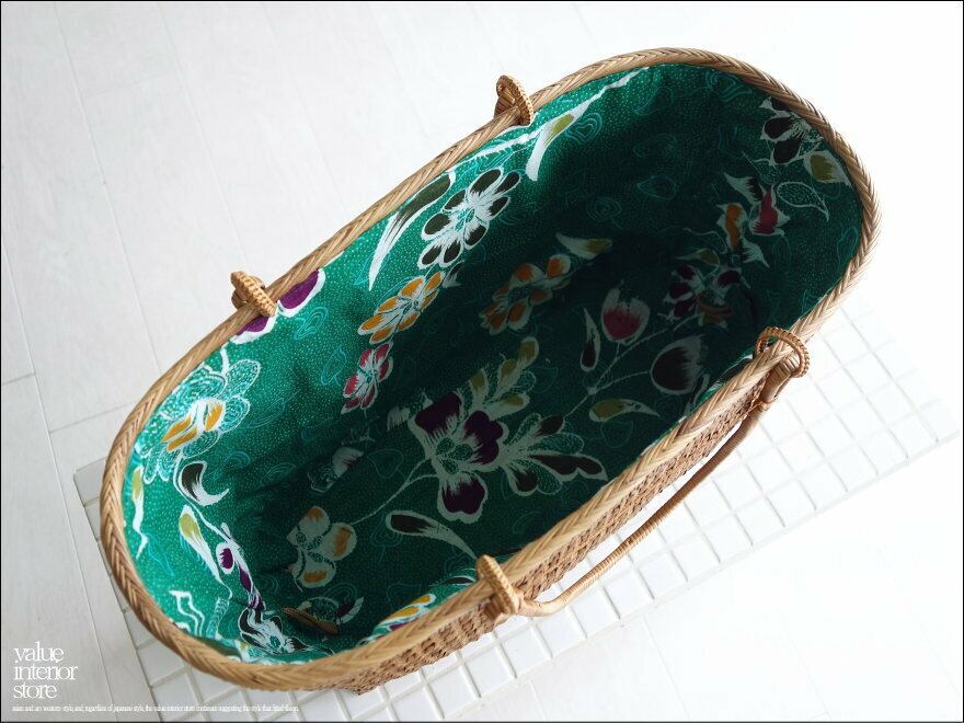 かごバッグ アタバッグKE08 巾着バッグ 籠バッグ 浴衣や夏着物に似合います ハンドバッグ イカット生地 和装 手づくり 手編み 天然素材