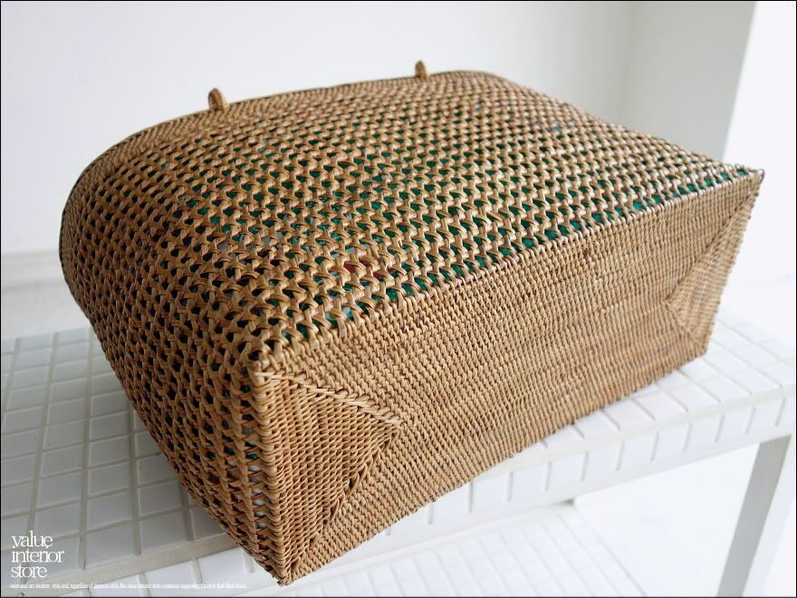 当店は家具やインテリア雑貨の専門店ですが、良い職人さんとのご縁があり数点を取扱いをさせていただきました。グレードが様々にあるアタ製品ですが、こちらは日本の大手百貨店で販売されている製品を作る職人が手がけたバッグとなります。グレードの低い製品は、編み方が不揃いだったり、間隔が広かったり、仕上げにのりを使用しますので不自然な艶があり、後々表面からそれが剥げてきますが、こちらは材料取りの工程から熟練した職人さんが作り上げていますので、編み方も整っていて、のりを使用していませんので、燻蒸によって出された自然な質感で、お使いいただくうちに艶が出てまいります。また、アタがほつれたりした場合でも製作した職人さんに修理を依頼することも可能です(有料となります)。