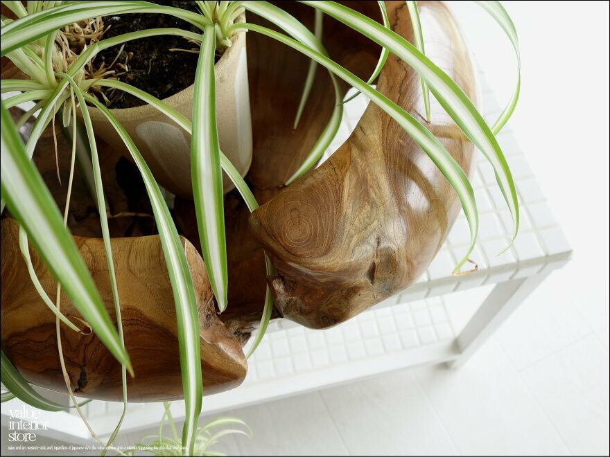 プリミティブチークポット平N44.5cm 鉢カバー 樹鉢 銘木 小物入れ 総無垢 プランツカバー 手作り プランツポット 手作り 天然木 送料無料
