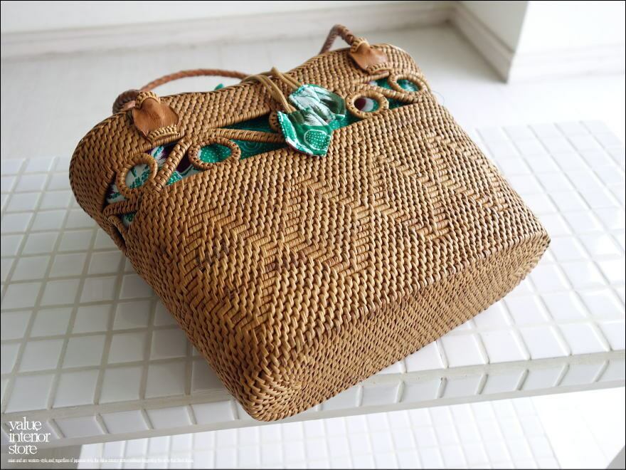 当店は家具やインテリア雑貨の専門店ですが、良い職人さんとのご縁があり数点を取扱いをさせていただきました。グレードが様々にあるアタ製品ですが、こちらは日本の大手百貨店で販売されている製品を作る職人が手がけたバッグとなります。グレードの低い製品は、編み方が不揃いだったり、間隔が広かったり、仕上げにのりを使用しますので不自然な艶があり、後々表面からそれが剥げてきますが、こちらは材料取りの工程から熟練した職人さんが作り上げていますので、編み方も整っていて、のりを使用していませんので、燻蒸によって出された自然な質感で、お使いいただくうちに艶が出てまいります。また、アタがほつれたりした場合でも製作した職人さんに修理を依頼することも可能です(有料となります)。