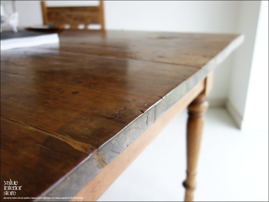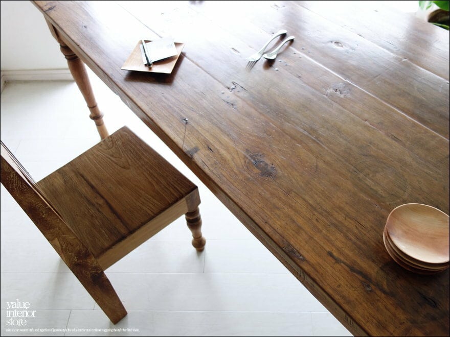 とても存在感がありゆったりとしています。職人さんが丹精こめて作った印象に溢れていて、このテーブルに向かうと自然と気持ちまで落ち着くようです。西洋、アジアン、和風モダン、北欧など幅広いテイストのインテリアと相性良くコーディネートできますのでお気に入りスペースでお使いください。
