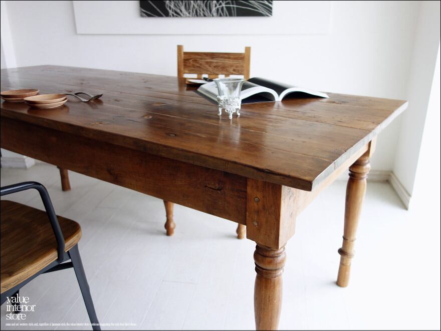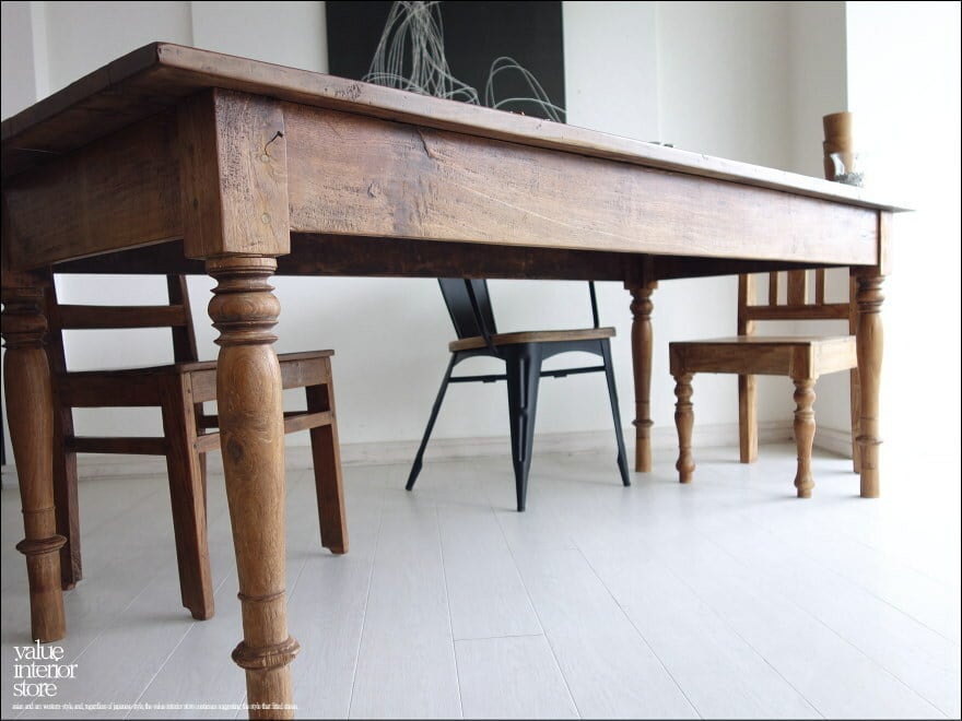 チーク総無垢アンティークダイニングテーブルKE ヴィンテージテーブル 机 古材 重厚 一点物 世界三大銘木 送料無料 幅209.5×奥87.5