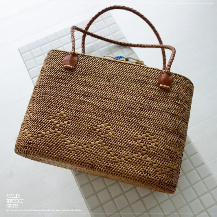 当店は家具やインテリア雑貨の専門店ですが、良い職人さんとのご縁があり数点を取扱いをさせていただきました。グレードが様々にあるアタ製品ですが、こちらは日本の大手百貨店で販売されている製品を作る職人が手がけたバッグとなります。グレードの低い製品は、編み方が不揃いだったり、間隔が広かったり、仕上げにのりを使用しますので不自然な艶があり、後々表面からそれが剥げてきますが、こちらは材料取りの工程から熟練した職人さんが作り上げていますので、編み方も整っていて、のりを使用していませんので、燻蒸によって出された自然な質感で、お使いいただくうちに艶が出てまいります。また、アタがほつれたりした場合でも製作した職人さんに修理を依頼することも可能です(有料となります)。
