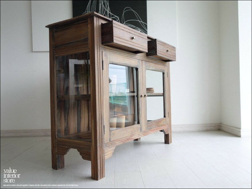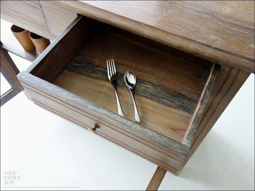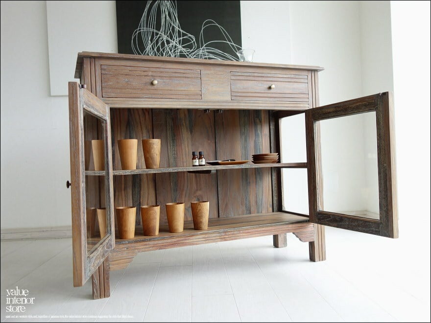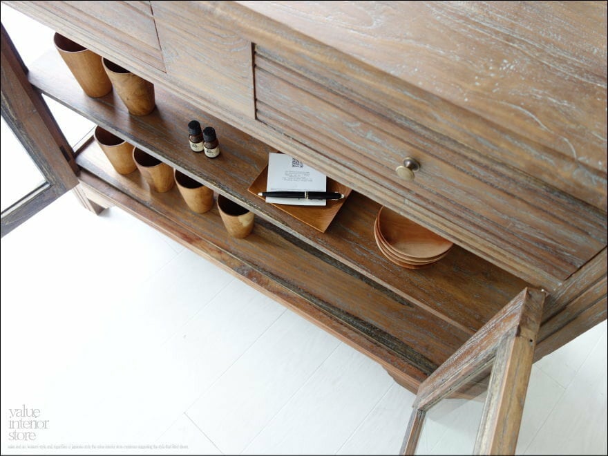 ・素材 : チーク総無垢、ガラス、真鍮(取っ手)