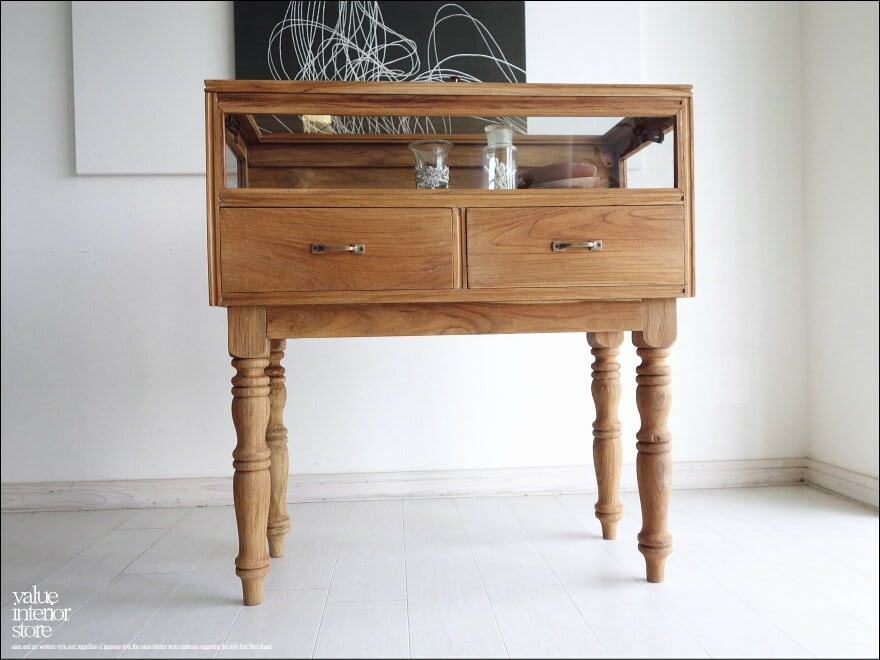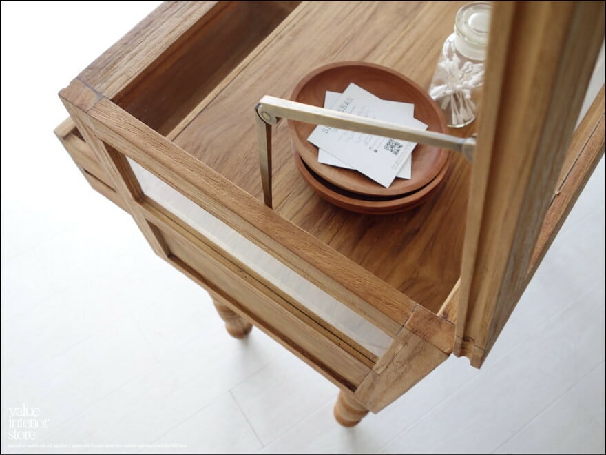 ・素材 : チーク総無垢、ガラス、真鍮(取っ手)、(引き出しの底のみ合板)