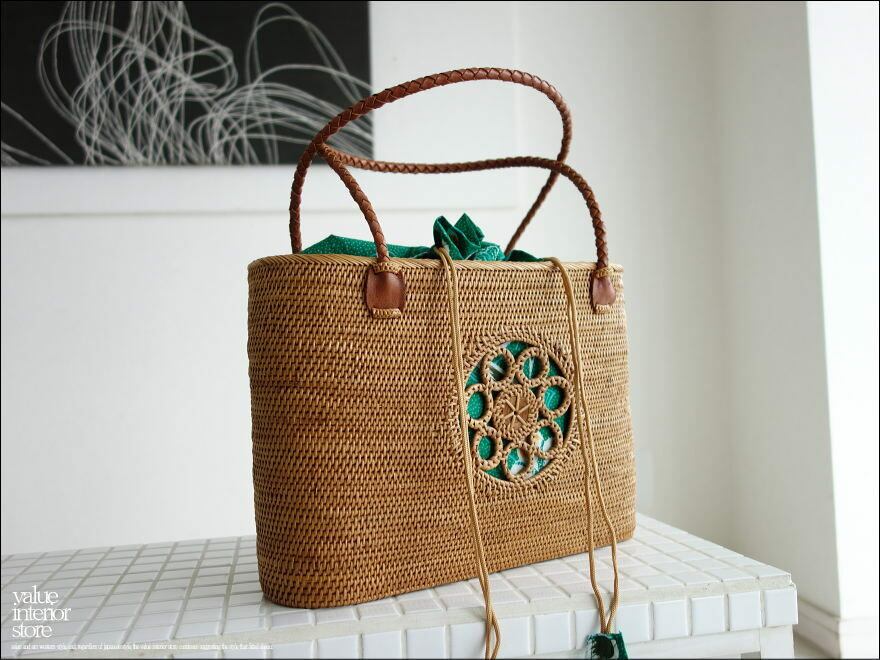 当店は家具やインテリア雑貨の専門店ですが、良い職人さんとのご縁があり数点を取扱いをさせていただきました。グレードが様々にあるアタ製品ですが、こちらは日本の大手百貨店で販売されている製品を作る職人が手がけたバッグとなります。グレードの低い製品は、編み方が不揃いだったり、間隔が広かったり、仕上げにのりを使用しますので不自然な艶があり、後々表面からそれが剥げてきますが、こちらは材料取りの工程から熟練した職人さんが作り上げていますので、編み方も整っていて、のりを使用していませんので、燻蒸によって出された自然な質感で、お使いいただくうちに艶が出てまいります。また、アタがほつれたりした場合でも製作した職人さんに修理を依頼することも可能です(有料となります)。
