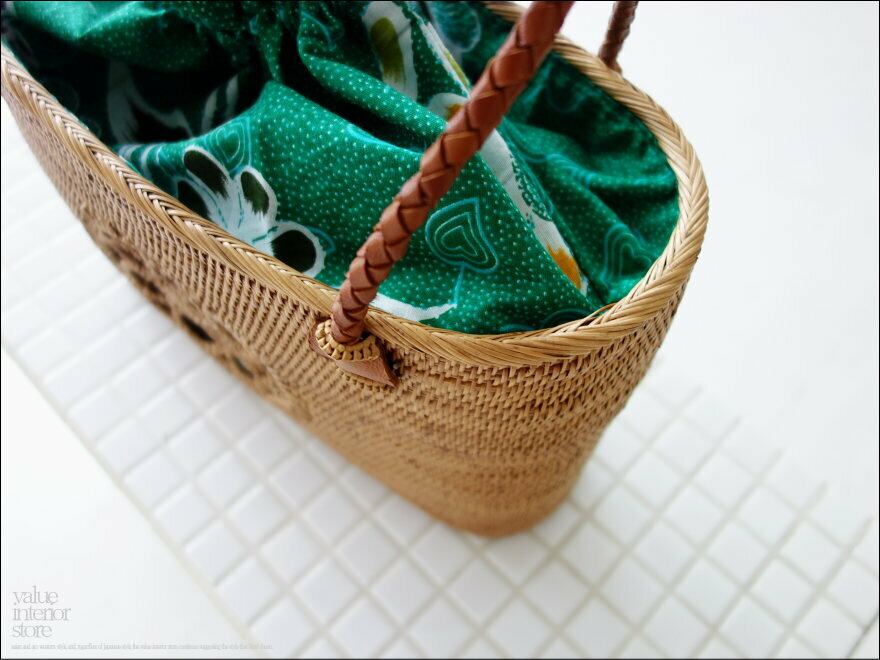 かごバッグ アタバッグKE17 巾着バッグ 籠バッグ 浴衣や夏着物に似合います ハンドバッグ 夏バッグ イカット生地 和装 手づくり 自然素材