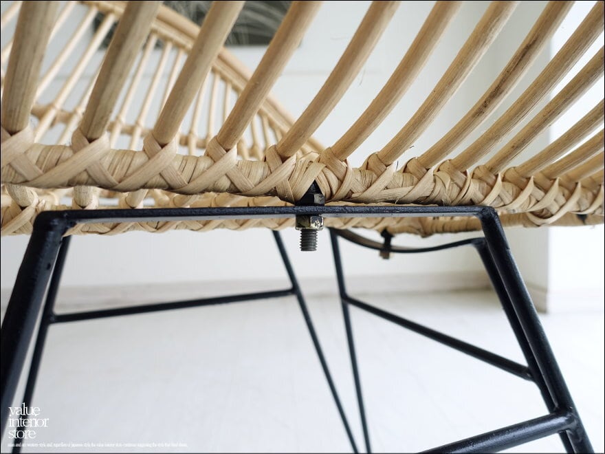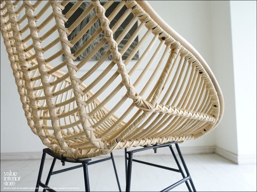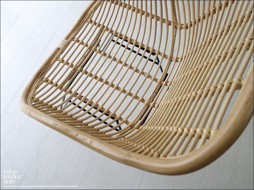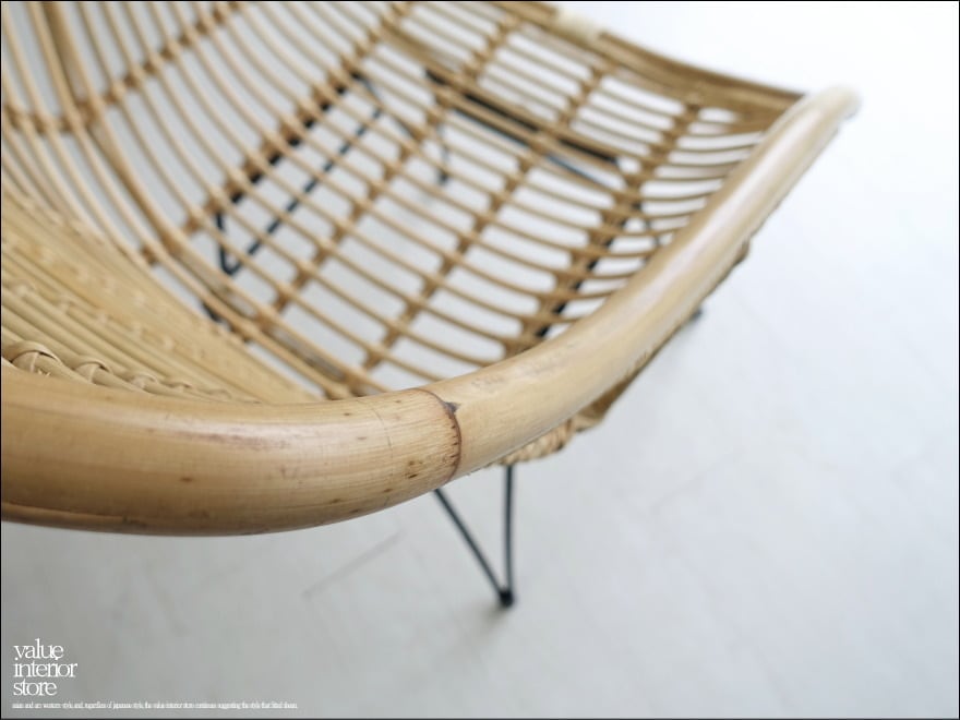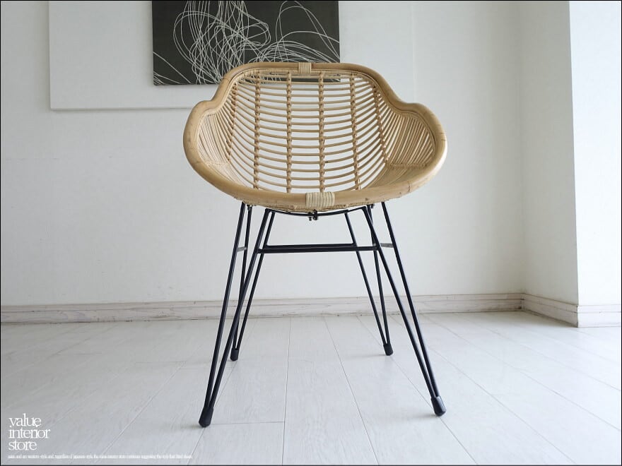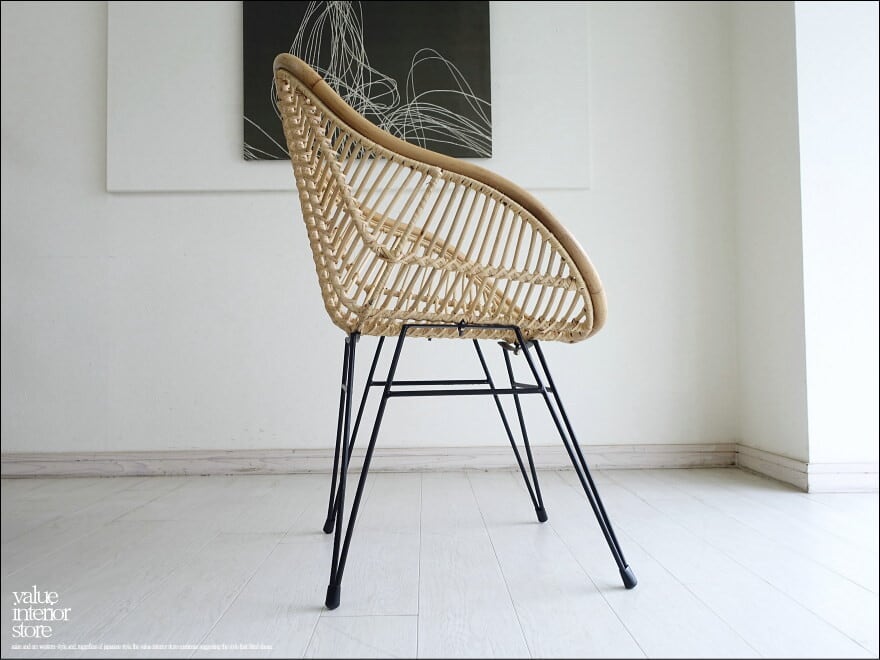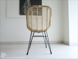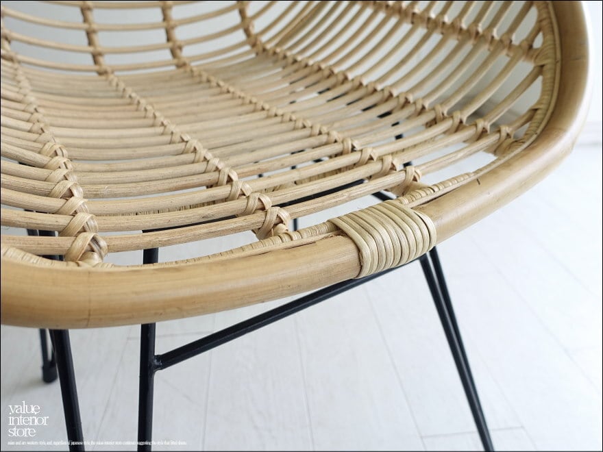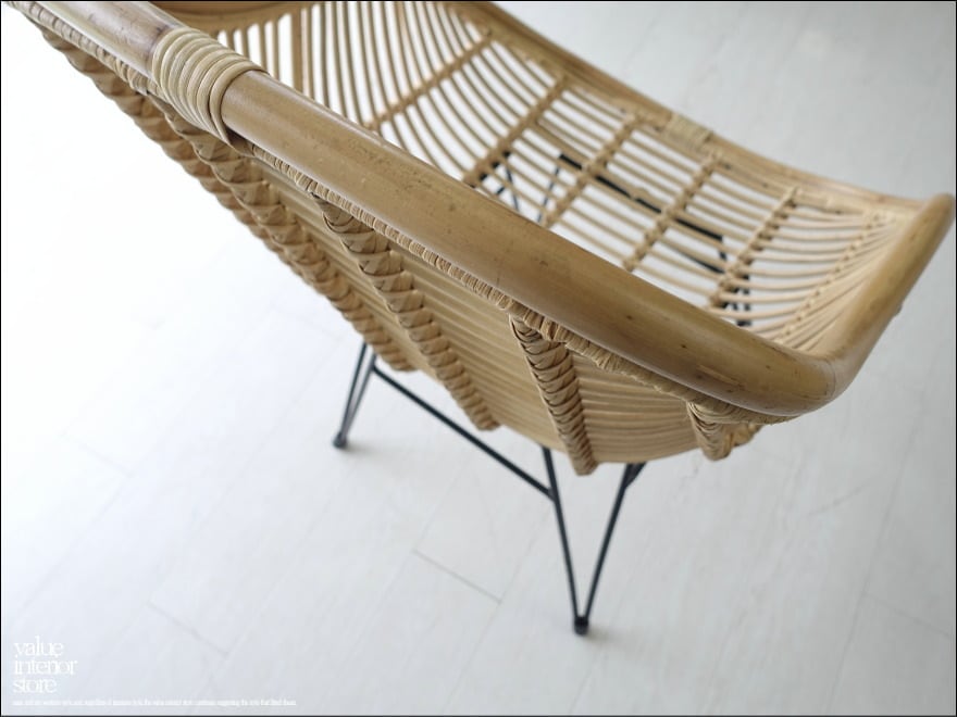丁寧に手編みされた曲線の美しいラタンとアイアンの脚のバランスが素敵なチェア。 包み込むように座れて座り心地がとても良いです。自然の素材ならではの質感で、耐久性にも優れているラタン。ゆったりとおくつろぎいただけます。