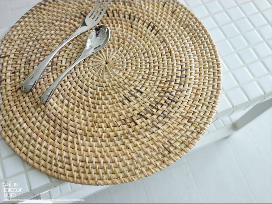ラタン ランチョンマットNA 手編みマット 敷物 テーブルウェア 円形 籐 キッチン雑貨 ナチュラル ハンドメイド 自然素材 Φ35cm