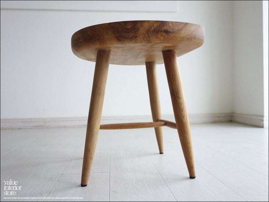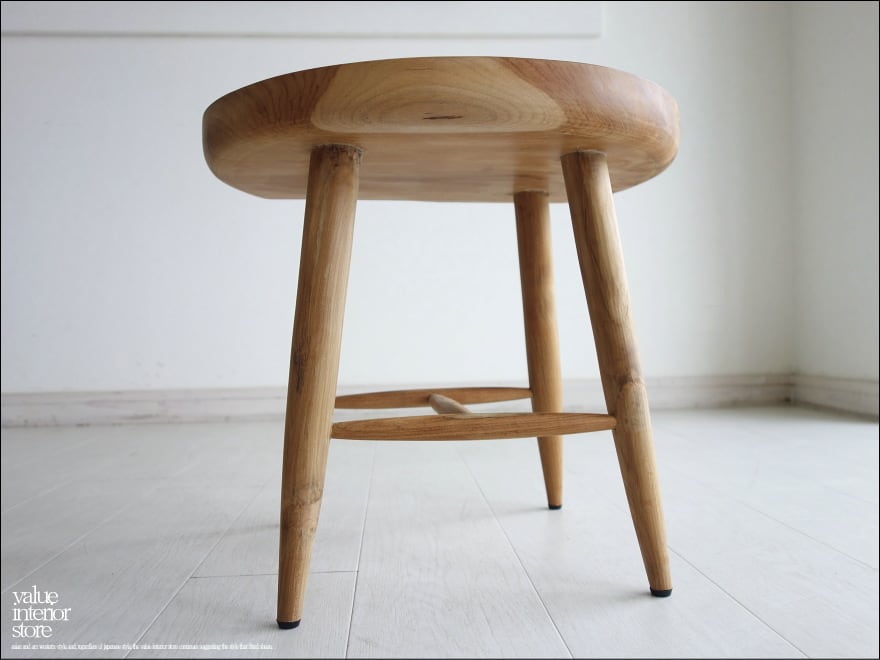 チーク総無垢 スツール曲 椅子 イス 木製 ベンチ チェア 手作り家具 素朴 和風 天然木 ハンドメイド ナチュラル 送料無料 『1台限り』