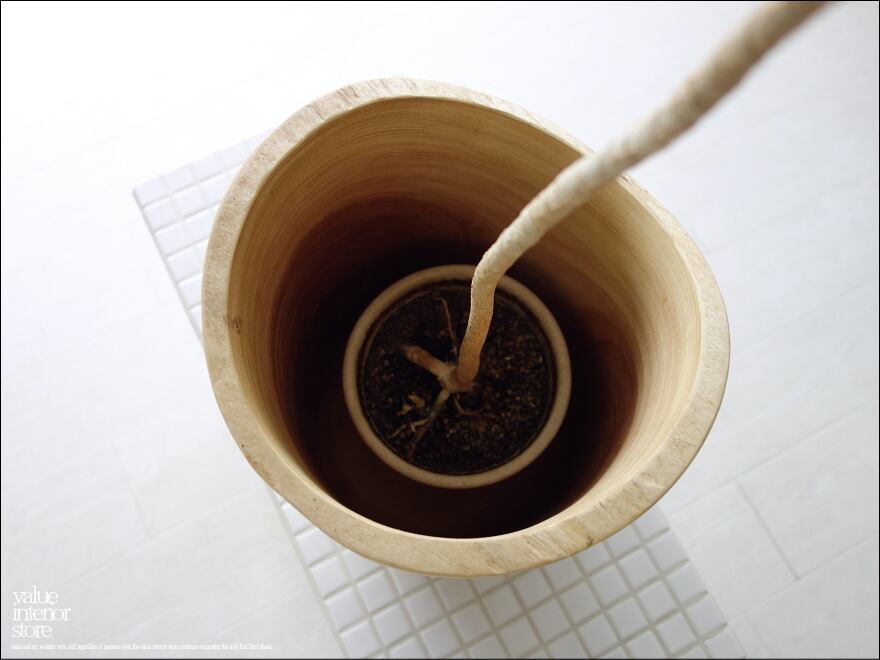 ナチュラルなモンキーポッドの色合いが魅力的です。ごみ箱や入れ物としてもお使いいただけます。※ポットカバーとしてお使いの場合、中に受け皿を置いてご使用下さい。