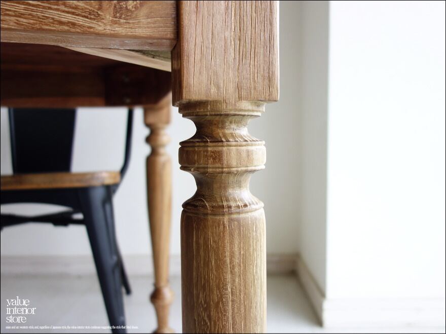 ナチュラルカラーながらスマートなデザインで仕上げることで、落ち着いた大人の雰囲気に仕上がりました。チークの渋く硬い特徴を引き出す角型の天板を柔らかな丸脚が支えていて、そのバランスがとても上品です。シンプルなデザインで、チークの良さを存分に楽しんでいただける、とてもステキなダイニングテーブル。こんなテーブルで毎日食事ができたらペースダウンできステキでしょうね。ショップやカフェのテーブルとしてもおすすめです。