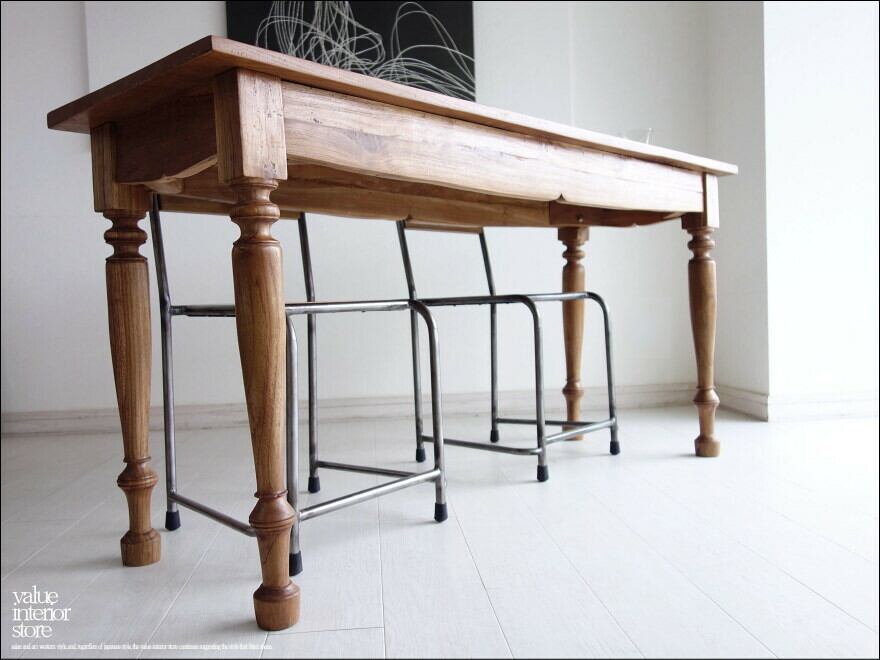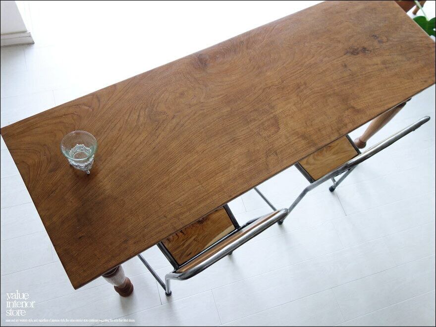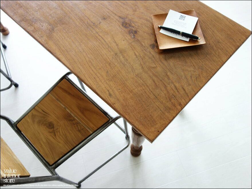 チーク無垢材 ヴィンテージテーブル デスク 机 アンティーク ダイニング 什器 無垢材家具 一点物 表面再仕上済 153cm 送料無料 三大銘木