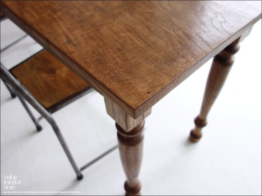 ※この商品は、表面再仕上げや欠損箇所の補修、また、天板を一体型よりノックダウン式に変更したリメイク品ですが、元々の雰囲気は極力残して仕上げています。ビスの跡、傷、ひび割れ、フシ穴、色の濃淡、傾き、埋木、反り、木の凹凸などがありますがございますが、素材や古い物のテイストとして予めご理解をいただきますようお願い致します。