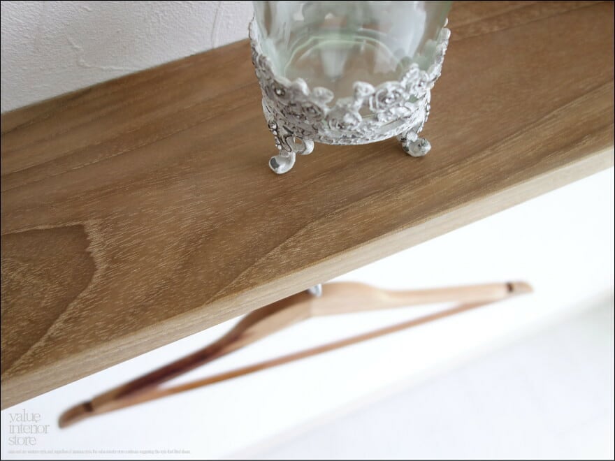 ハンガーやタオル掛け、フックを引っ掛けてご使用いただけますので、キッチンや玄関に、また、お部屋の小物掛けにどうぞ。チーク板の上は小物を置く事もできますのでディスプレイスペースとしてもお楽しみください。