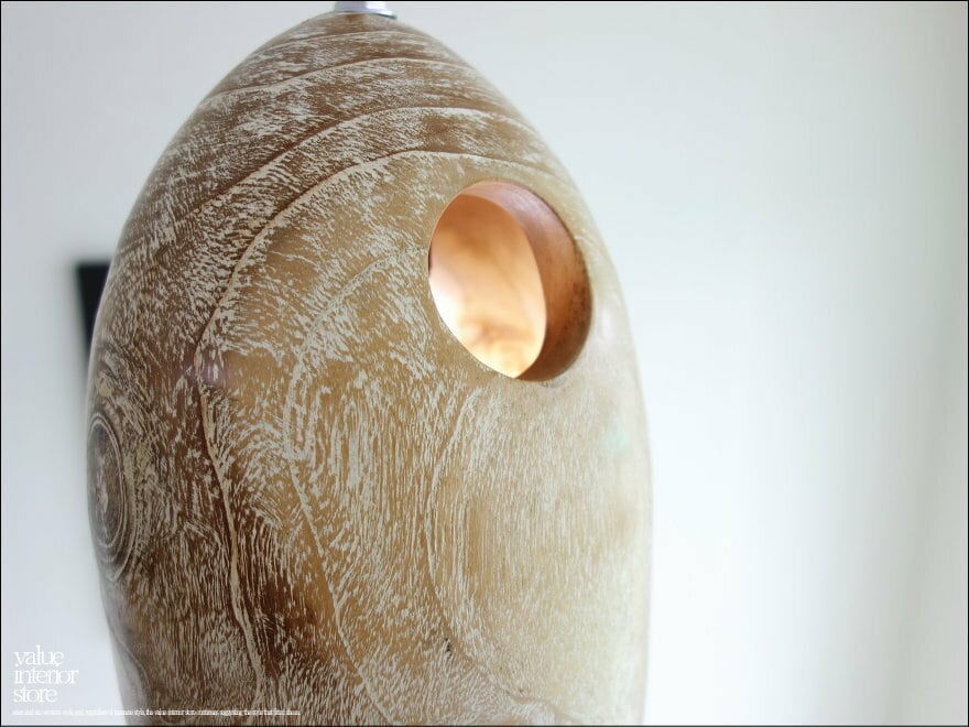※日本製のような正確さは無いかもしれませんが、1点1点出来上がるまでの殆どの工程を手作業で行うインドネシア職人たちの手造りの製法にはとても暖か味が感じられます。細かな傷ワレやフシ穴、濃淡、また反りなどの無垢材特有の”暴れ”、器具とシェードの中心の傾きなど見受けられる場合がございますが、素材や手づくりのテイストとして工業品にない自然の質感をお楽しみ下さい。