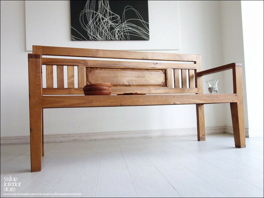 総無垢材 チークヴィンテージソファ 長椅子 3人掛け ベンチ トリプルソファ 椅子 古材家具 一点物 リメイク家具 送料無料 三大銘木 幅146cm