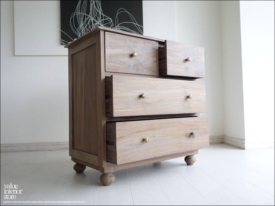 総無垢 チークチェストR80balq タンス 収納家具 整理タンス 箪笥 チーク材 天然木 手作り 銘木 無垢材 真鍮金物 エイジング 送料無料