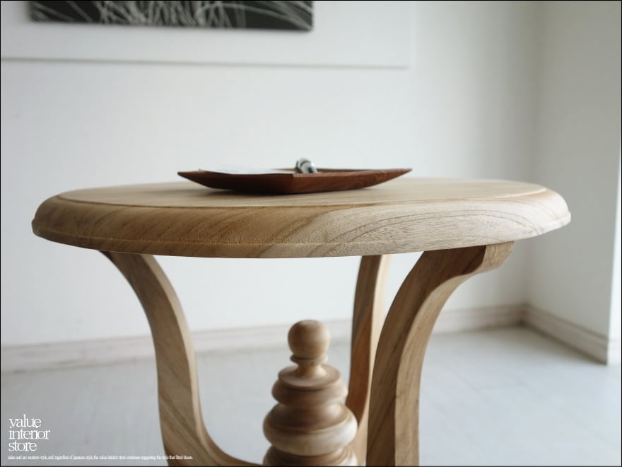 チーク総無垢材 サイドテーブルAN カフェテーブル 机 コーヒーテーブル 円形 ナチュラル 素朴天然素材 総無垢 銘木家具 送料無料