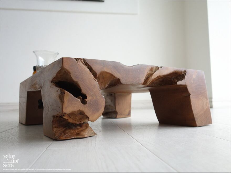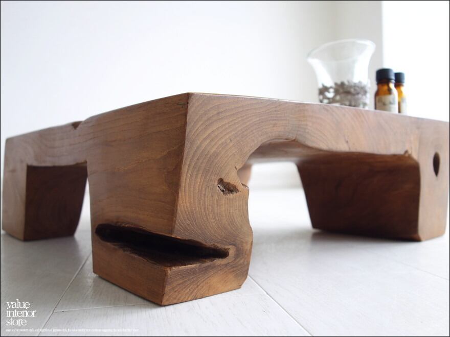 チーク総無垢材 花台 飾り台 ディスプレイ台 鉢置き ナチュラル 天然木 盆栽台 一枚板 銘木 プリミティブ 総無垢 削り出し 一点物 送料無料