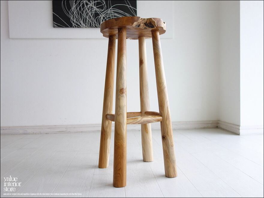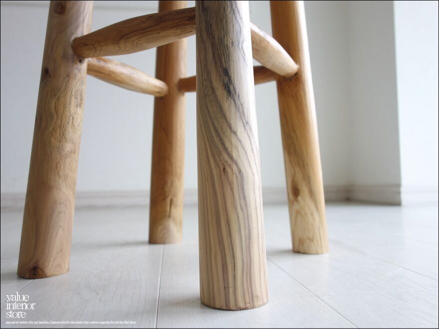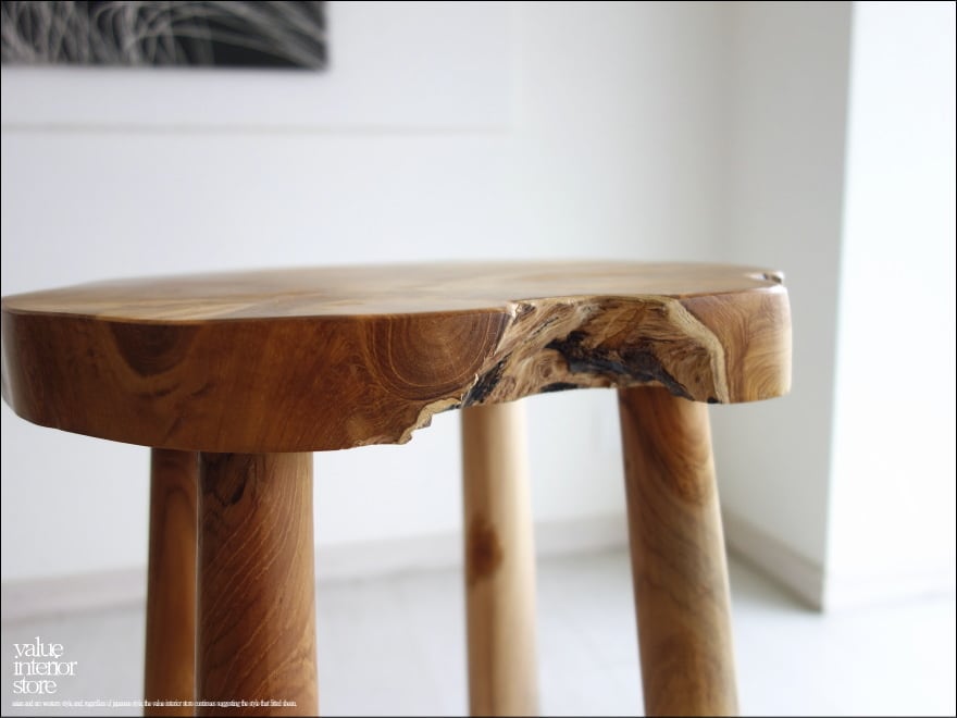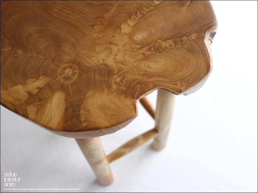 プリミティブな座面と変化に富んだ木目が個性的で素敵です。椅子以外にもちょっとした飾り台としてもお使いいただけるデザインです。ショップなどのディスプレイ台、花台としても素敵ですね。この機会にぜひどうぞ。