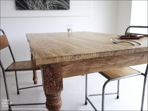 一目見ただけで木目の味わい深さを感じられるオールドチークのダイニングテーブル。