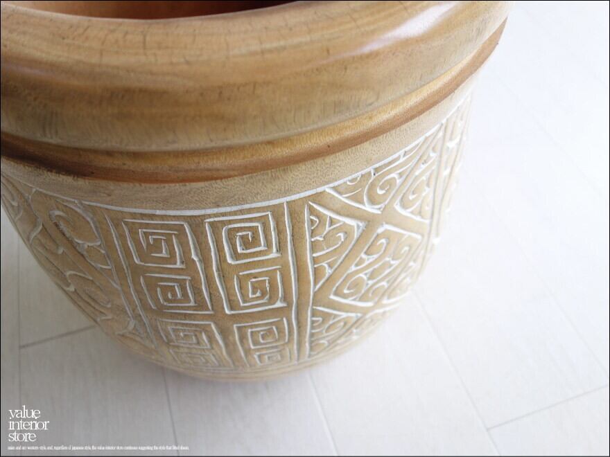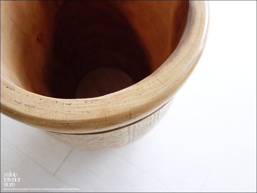 ナチュラルなモンキーポッドの色合いが魅力的です。当店で取り扱うなかでも最大級の大型の鉢カバー。入れ物としてもお使いいただけます。※ポットカバーとしてお使いの場合、中に受け皿を置いてご使用下さい。