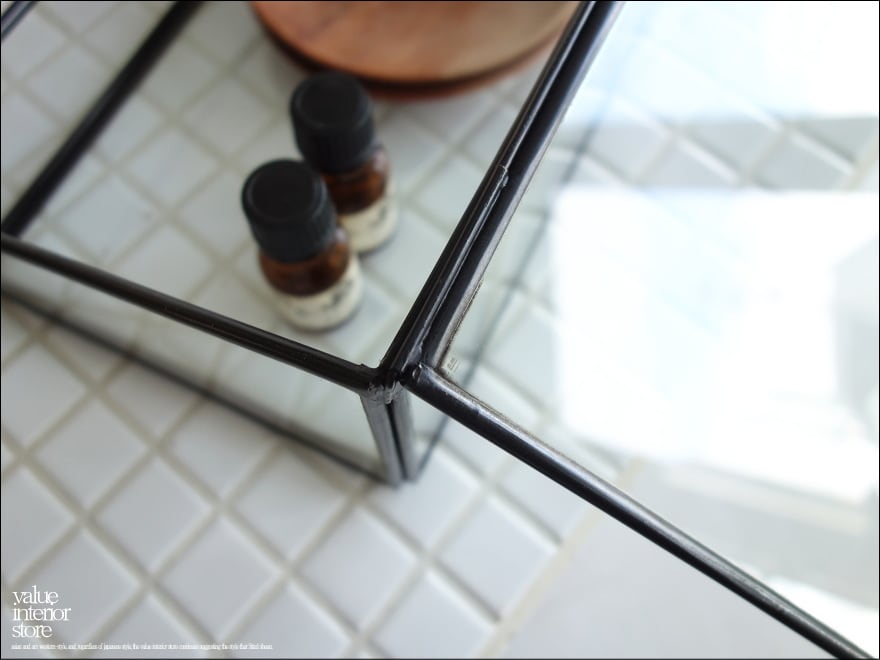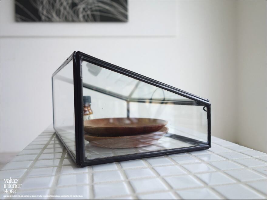 アンティークブラックに真鍮を塗装したガラスケース。レトロ感のある雰囲気が素敵です。