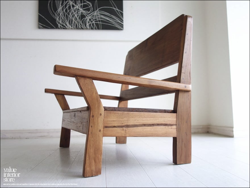 チーク総無垢材 ヴィンテージベンチ 長椅子 アンティーク イス 椅子 手づくり ナチュラル 再生家具 表面再仕上 什器 送料無料 一点物 W81cm
