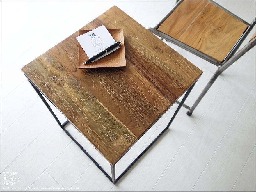 チーク無垢材 サイドテーブルNM コンソールテーブル 飾り台 花台 手作り シンプル ナチュラル 鉄 銘木家具 アイアン W40xH55cm 送料無料