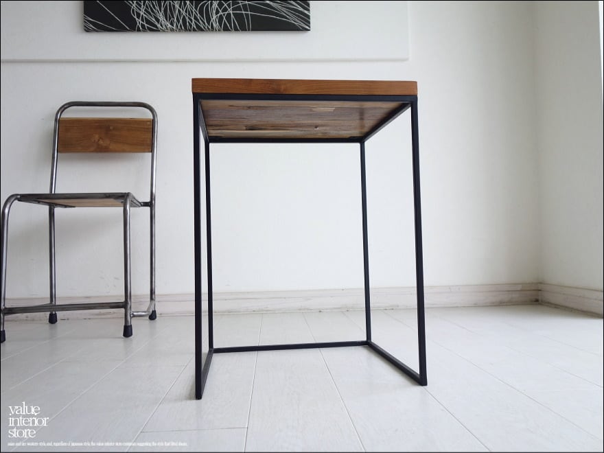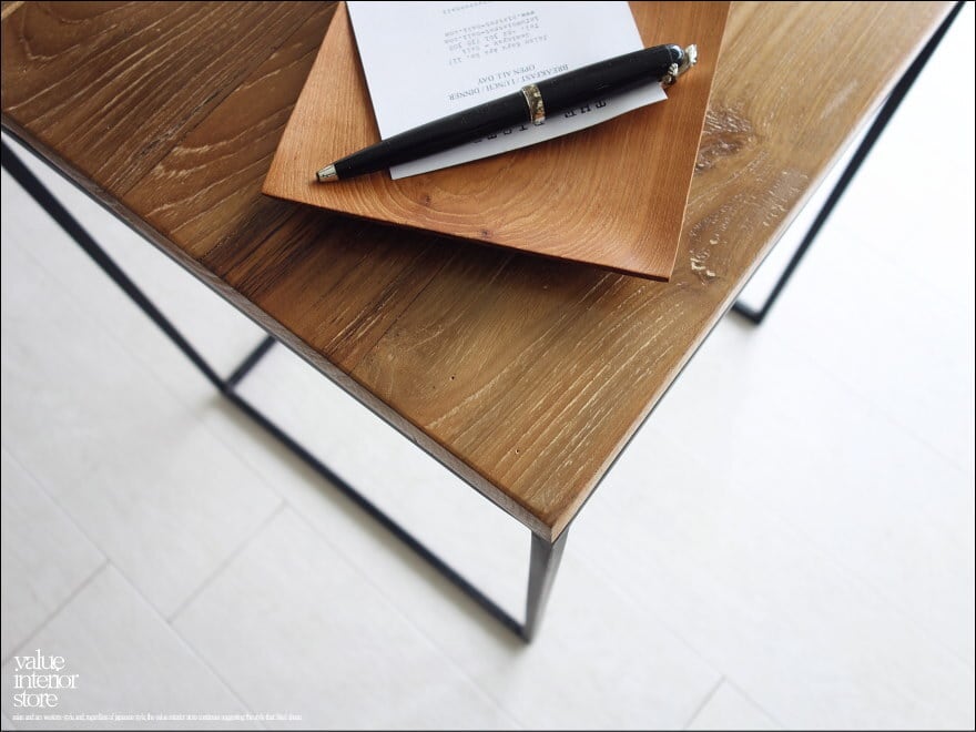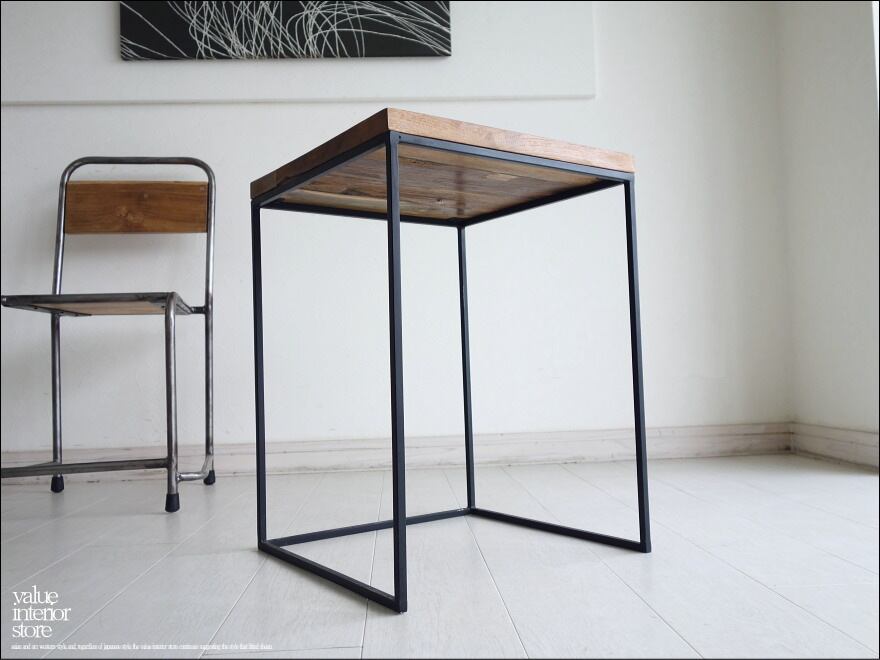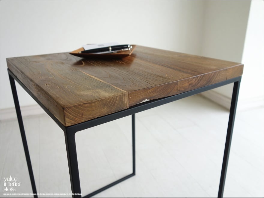 チークと鉄脚のサイドテーブル。飾り台やコンソールテーブルとして用途は様々です。