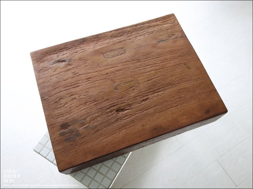 この商品は、表面再仕上げや欠損箇所の補修などをしている再生品となります。元々の雰囲気は残して仕上げています。傷、ワレやフシ穴、色の濃淡、傾き、歪み、反り、汚れなどがございますが、素材や古いものの持つテイストとしてご理解をいただきますようお願い致します。
