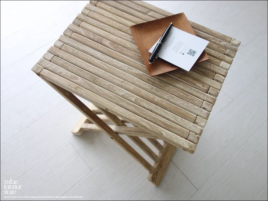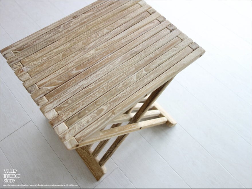 チーク無垢材 折畳みスツール / WW 折畳椅子 サイドテーブル イス ベンチ チェア 花台 折り畳み シャビー 手作り家具 送料無料 idaex