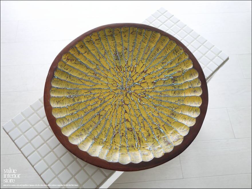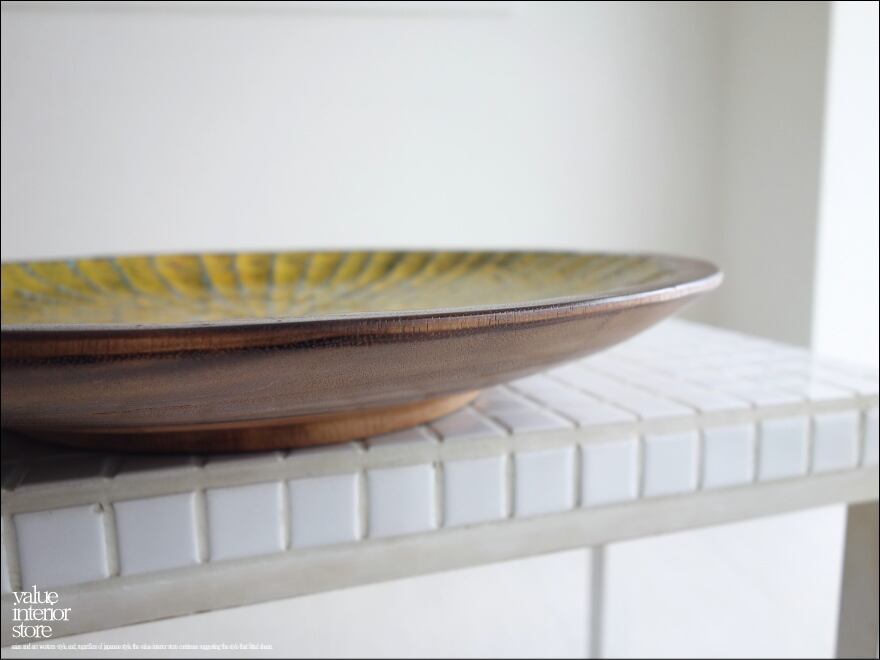 モンキーポッド総無垢材 デコレーショントレイY 小物入れ 飾り皿 木製 手作り エスニック ハンドメイド 送料無料 一点物 直径40cm