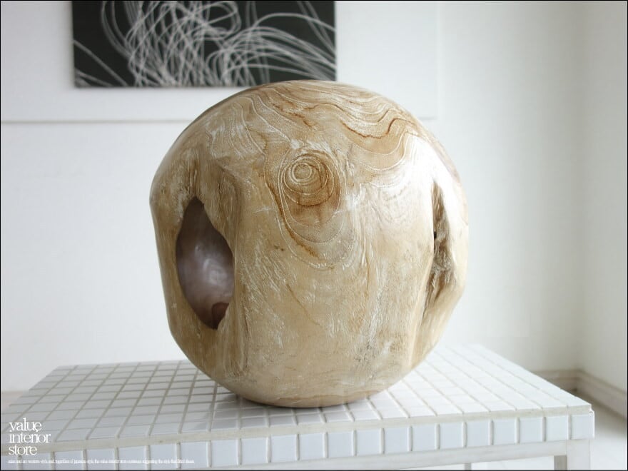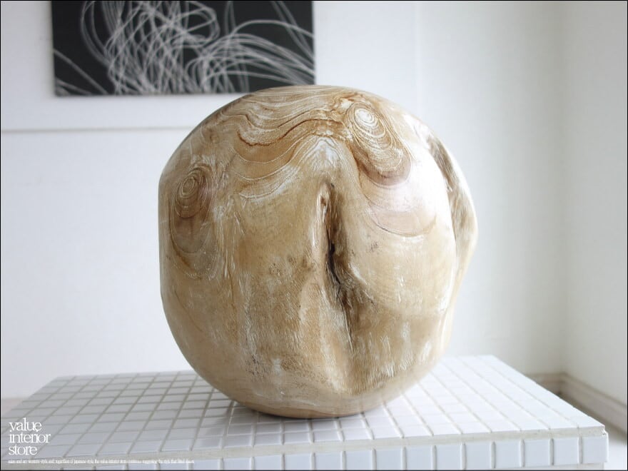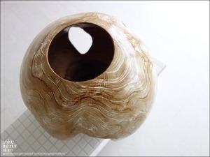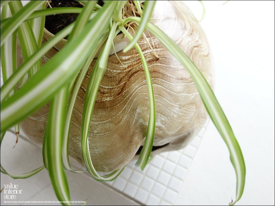 プリミティブなチーク材の味のある木目が魅力的な鉢カバー。