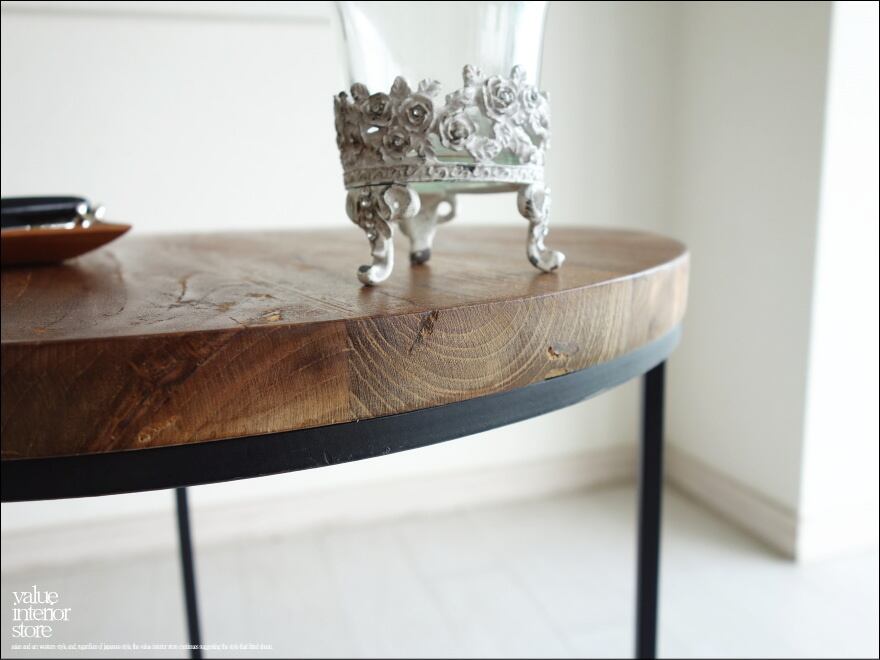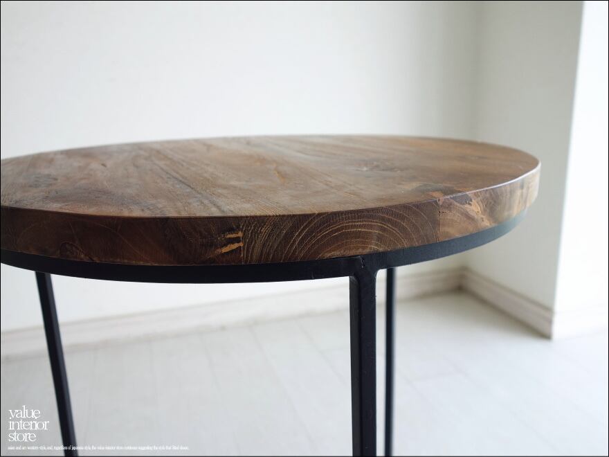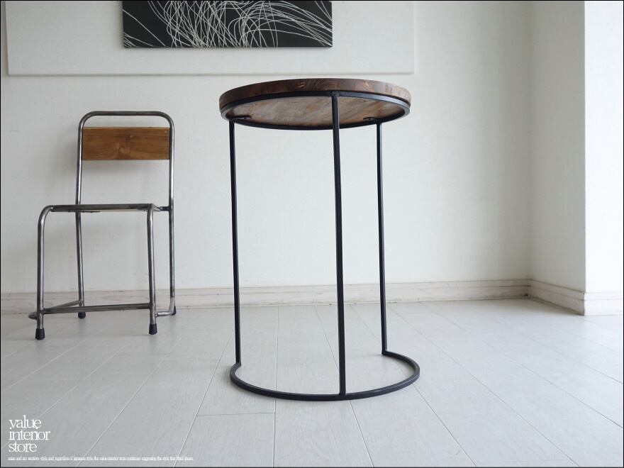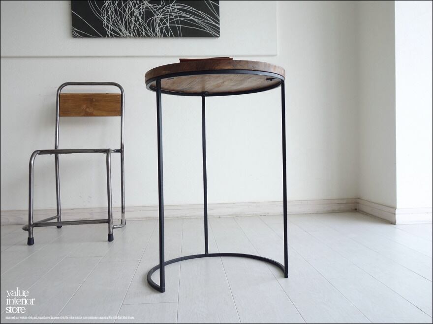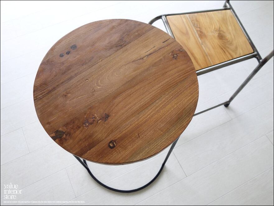 チーク無垢材 サイドテーブルNL コンソールテーブル 飾り台 花台 手作り シンプル 無垢 ナチュラル 鉄脚 銘木家具 Φ45xH66cm 送料無料